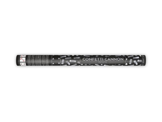 Tuba strzelająca metalicznym konfetti w kolorze srebrnym, długość 60 centymetrów.