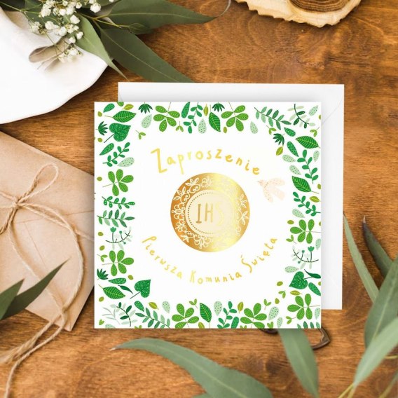 Zaproszenie KW Komunia Złoty opłatek Henry (5908451982317)