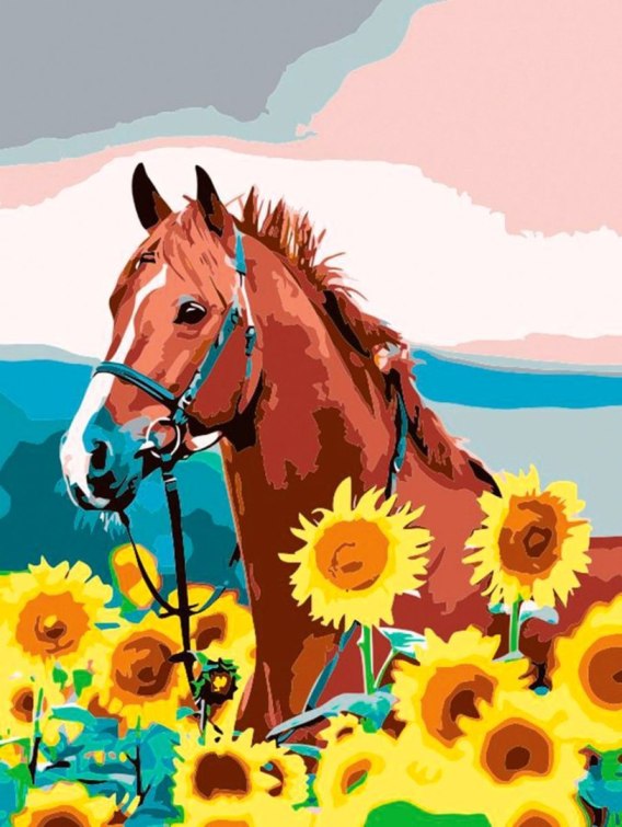 Zestaw kreatywny Malowanie po numerach 30x40cm Koń w słonecznikach Flamingo Line (FSY459)