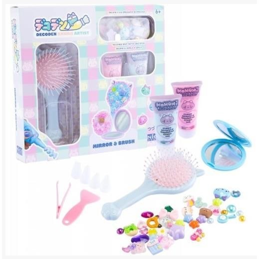 Zestaw MOMOMI Mirror & Brush rozwija kreatywność i zdolności manualne. Dzięki kremowi Decoden możesz tworzyć fantazyjne zdobienia na przenośnym lusterku oraz pędzelku. Różnorodne końcówki pozwalają uzyskać ciekawe kształty, a dołączone akcesoria - szpatułka i szczypce - ułatwiają precyzyjne nakładanie dekoracji.